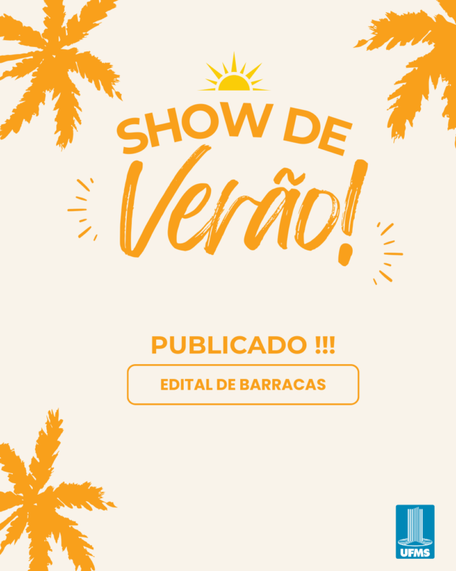 A Universidade Federal de Mato Grosso do Sul (UFMS), por meio do Câmpus do Pantanal (CPAN), publicou o Edital CPAN/UFMS nº 2/2026, que estabelece as normas para seleção de barracas que irão compor o Show de Verão da Recepção dos Calouros 2026.