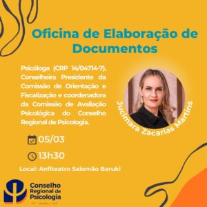 O evento será ministrado pela Prof. Dr. Jucimara Zacarias Martins, presidente da Comissão de Orientação e Fiscalização do Conselho Regional de Psicologia de Mato Grosso do Sul.